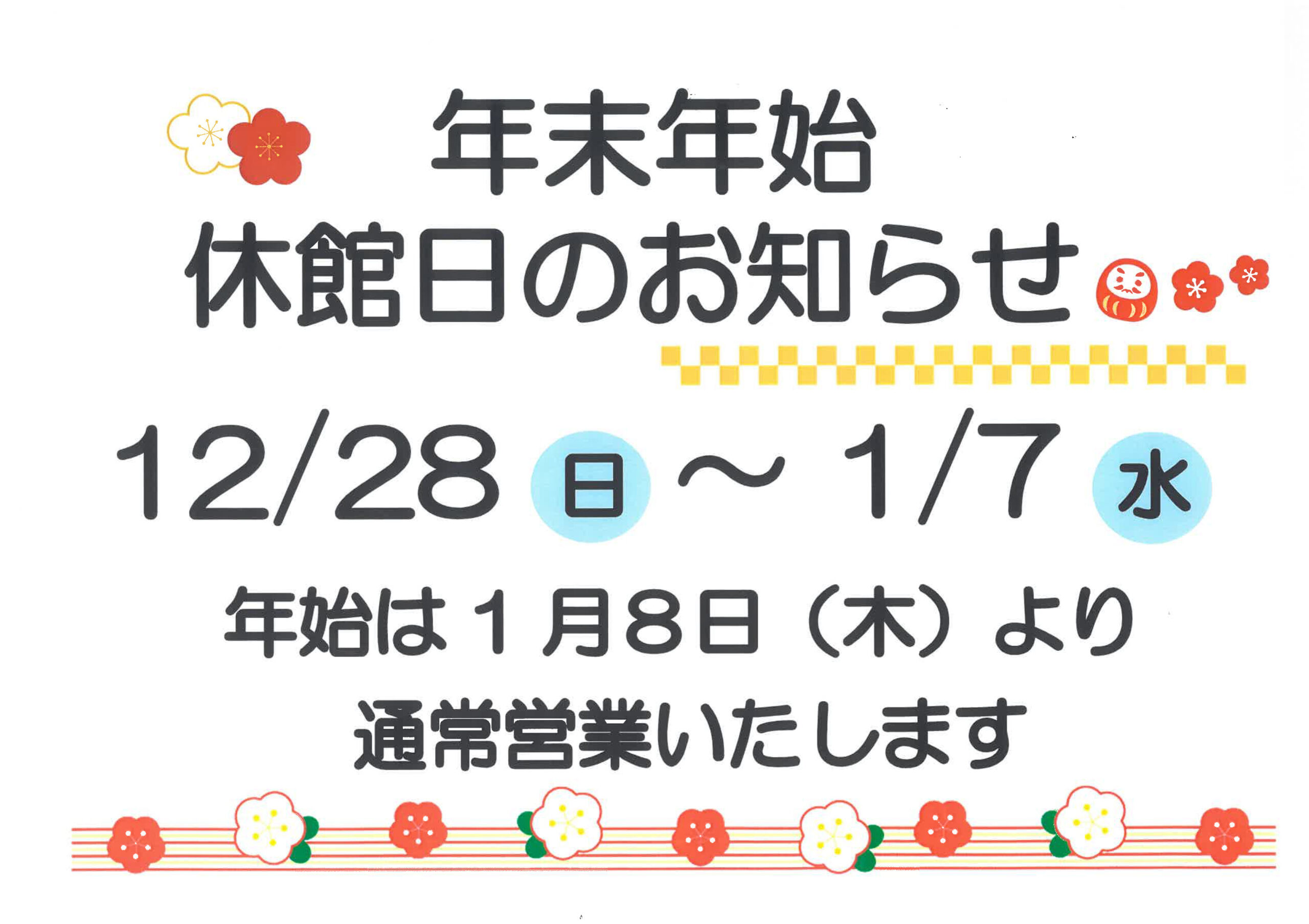 年末年始・休館日のお知らせです。
