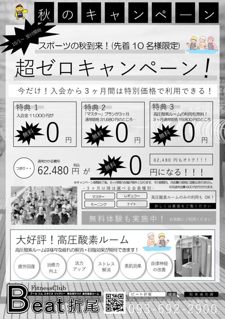 ビート折尾店では、10月1日より秋の入会キャンペーンを開催します。