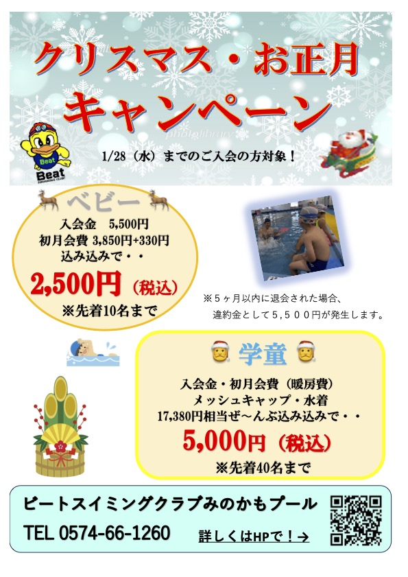 1/28(水)までにベビー・学童クラスにご入会いただいた方が対象です!?